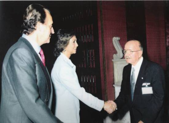 a los Reyes de España, Juan Carlos y Sofía, en el curso de un congreso internacional de la